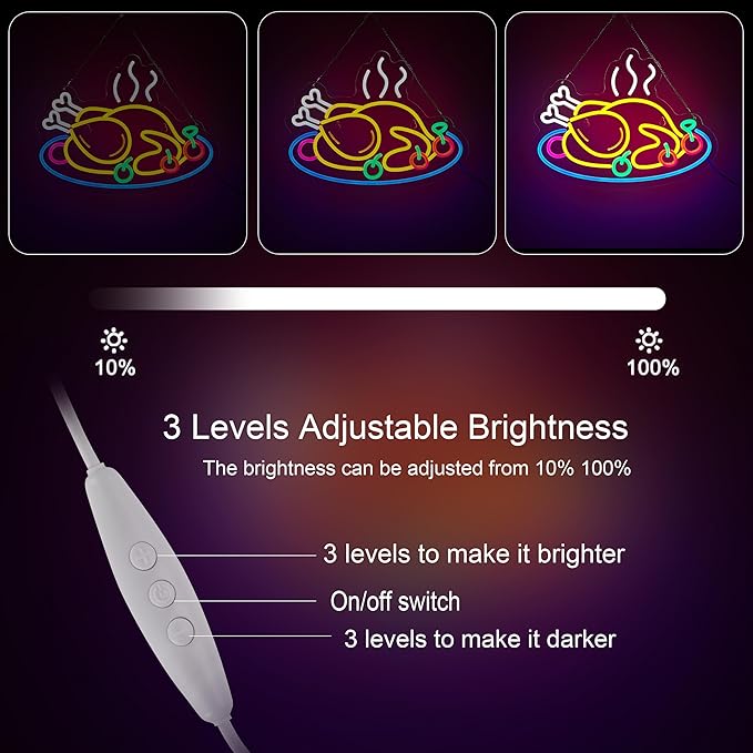 Grilled Chicken Neon Sign for Wall Décor Dimmable Roast Chicken Shop LED Light USB Powered Flame Neon Art Signs Decor
