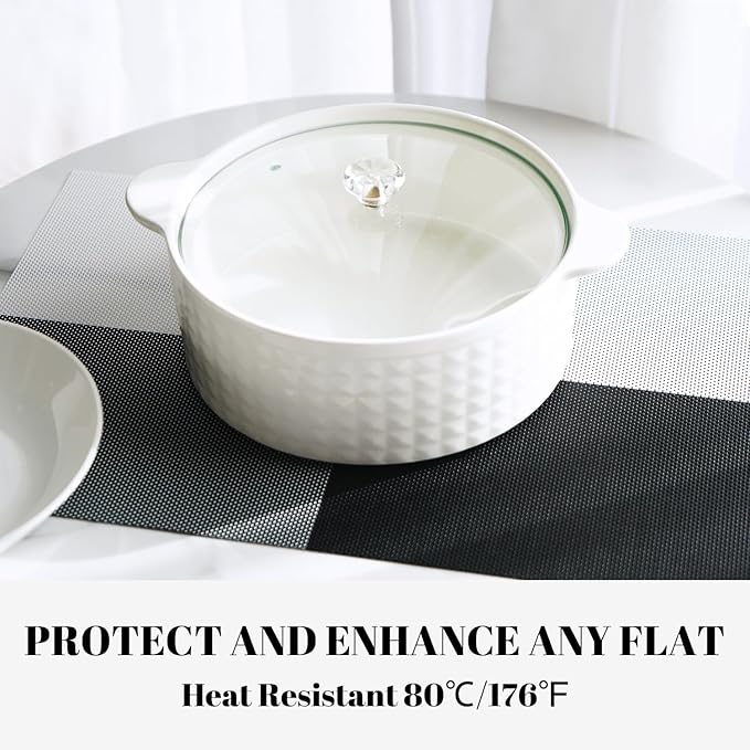 - Protect Your Table: These heat-resistant placemats can withstand temperatures up to 176°F (80°C), providing reliable protection against hot dishes, spills, stains, and scratches. Keep your table and furniture looking pristine while enjoying worry-free meals.