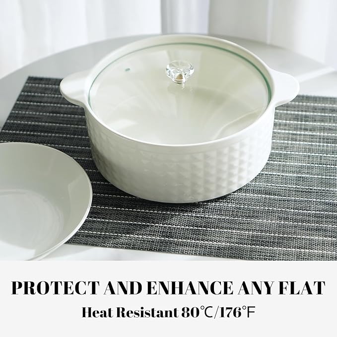 - Protect Your Table: These heat-resistant placemats can withstand temperatures up to 176°F (80°C), providing reliable protection against hot dishes, spills, stains, and scratches. Keep your table and furniture looking pristine while enjoying worry-free meals.
