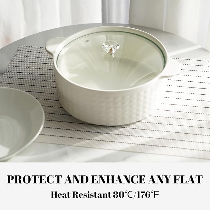 - Protect Your Table: These heat-resistant placemats can withstand temperatures up to 176°F (80°C), providing reliable protection against hot dishes, spills, stains, and scratches. Keep your table and furniture looking pristine while enjoying worry-free meals.