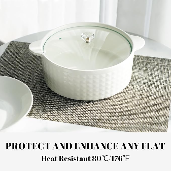 - Protect Your Table: These heat-resistant placemats can withstand temperatures up to 176°F (80°C), providing reliable protection against hot dishes, spills, stains, and scratches. Keep your table and furniture looking pristine while enjoying worry-free meals.