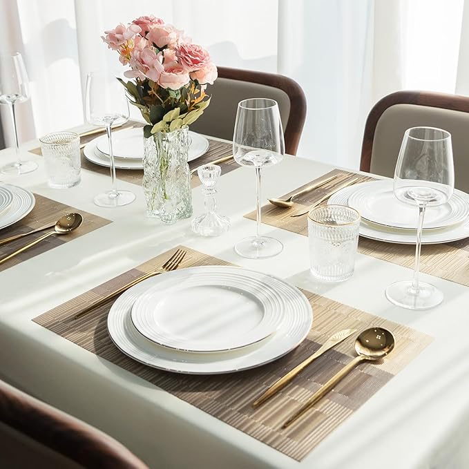 - Durable & High-Quality Placemats: Crafted from premium 70% PVC and 30% Polyester, these placemats for dining table are precision-woven for exceptional durability. Designed to withstand daily use, they are heat-resistant, water and oil proof, long-lasting, non-slip, and easy to clean, making them a practical and stylish addition to any dining setup.