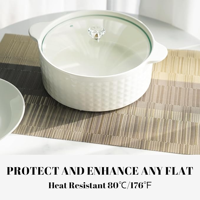 - Protect Your Table: These heat-resistant placemats can withstand temperatures up to 176°F (80°C), providing reliable protection against hot dishes, spills, stains, and scratches. Keep your table and furniture looking pristine while enjoying worry-free meals.
