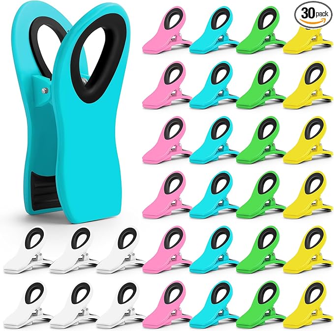 - Introducing our 30 pack of magnetic clips in four vibrant colors: pink, blue, green, yellow and white. These high-quality clips are perfect for daily use and add a touch of vitality to your home.