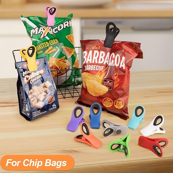 - Featuring non-slip rubber ribbed teeth and a high-strength elastic spring, these chip clips provide a tight seal to keep your snacks fresh and delicious. The clip and bag mouth won't fall off, ensuring the contents stay secure.