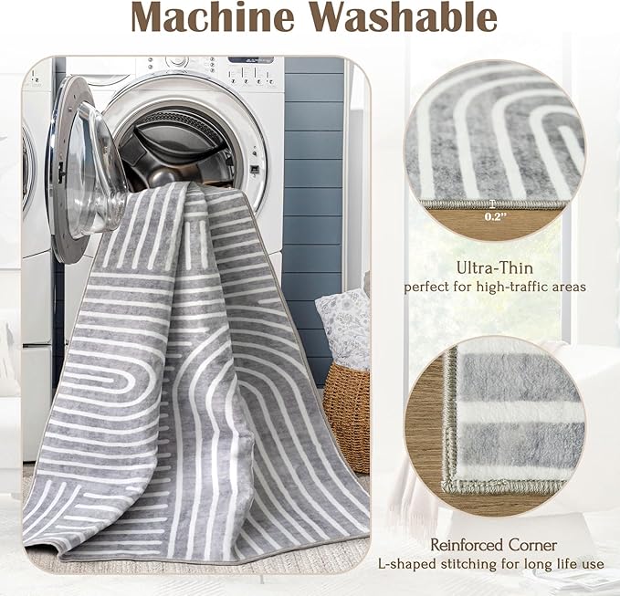- Ultra-Thin at 0.2 Inches: Our non-shedding rug is suitable for high traffic areas. Its low pile construction minimizes dirt and grime build-up, making it easy to clean and maintain. Enjoy an enduring and high-quality accent rug that will last for years to come. Please Note: This rug is ULTRA THIN, with a thickness of only 0.2 inches. Please check the product thickness details before purchasing