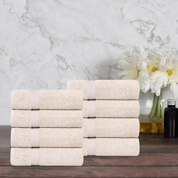 Superior Egyptian Cotton Hand Towel Set, Small Towels for Home Bathroom, Master, Guest Bath, Decor Essentials, Quick Dry, Absorbent, Kitchen, Spa, Hotel, Resort, Adult, Kids, Set of 8, Stone