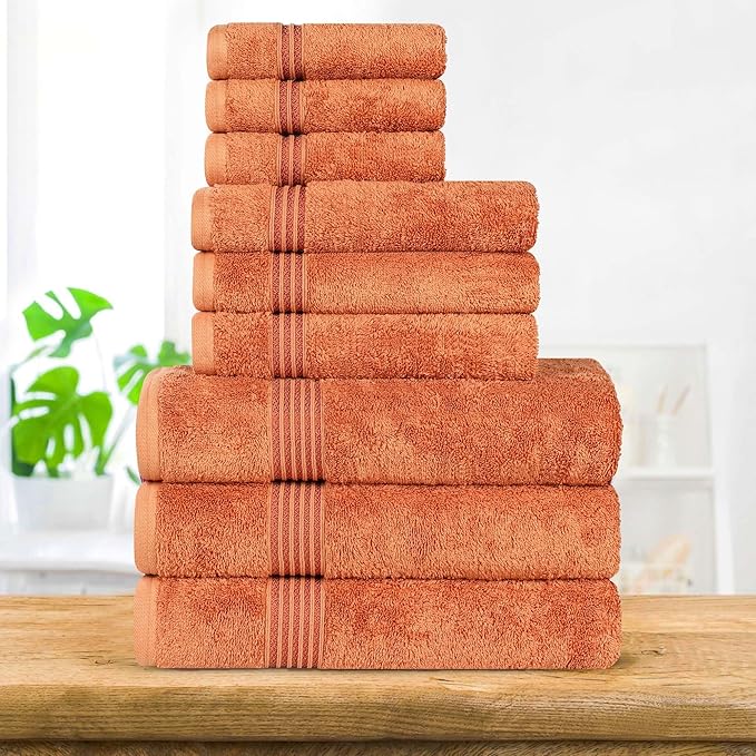 Superior Egyptian Cotton 9-Piece Towel Set, Assorted Towels for Home Bathroom, Master Bath, Decor Essentials, Includes 3 Bath, 3 Hand, 3 Face Towels/Washcloths, Quick Dry, Absorbent, Caramel Brown