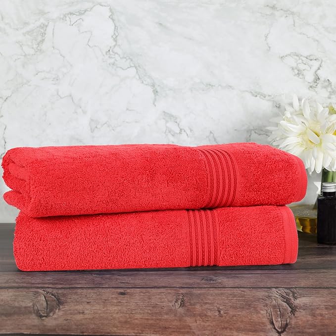 Superior Egyptian Cotton Bath Sheet Set, Oversized Towels for Home Bathroom, Master, Guest Bath, Decor Essentials, Quick Dry, Absorbent, Large Body Towel, Spa, Hotel, Resort, Set of 2, Red