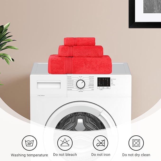 Superior Egyptian Cotton Bath Towel Set, Home Bathroom Towels, Master, Guest Bath, Decor Essentials, Quick Dry, Absorbent, Large Body Towels, Spa, Hotel, Resort, Adult, Kids, Set of 2, Red