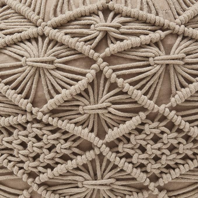 Ornavo Home Pouf Ottoman Foot Rest - 100% Cotton Pouffe - Hand Knitted Macrame Braid - Boho Round Stuffed Ottoman for Living Room, Bedroom - Beige