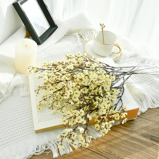 Mandy's Light Yellow Artificial Baby’s Breath Flowers 6 Bundles Silk Gypsophila with Bendable Stems for Fall Centerpiece Wedding Decor and Table Arrangements