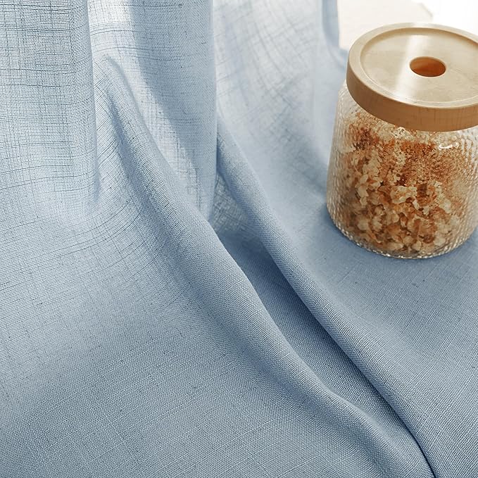 Dusty Blue Linen Curtains for Living Room Back Tab Light Filtering Semi Sheer Light Blue Bedroom Curtain Linen Cotton Textured Grey Blue Drapery Panel Airy Modern Farmhouse Aesthetic Decor 52x102 Long