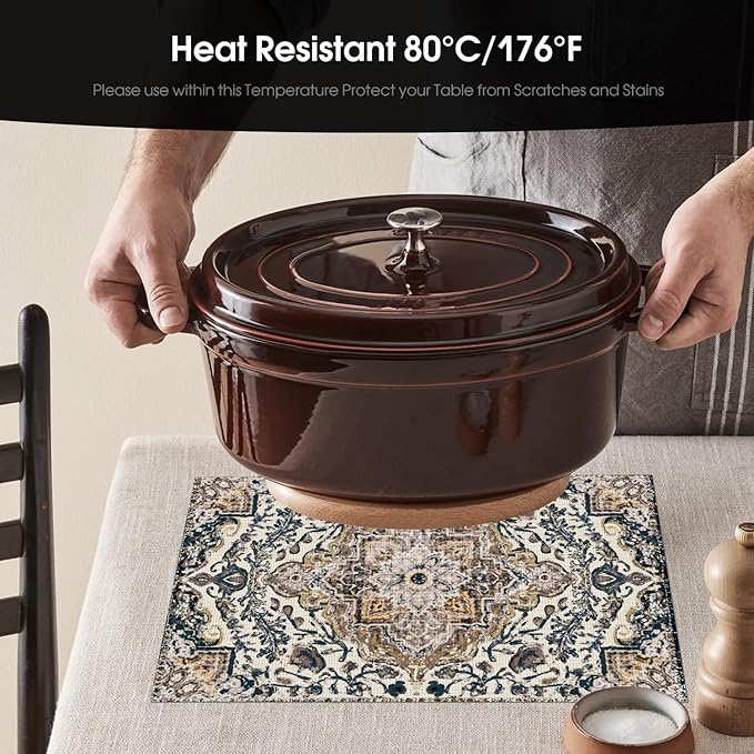 - Protect Your Table:The wipeable placemat Heat-resistant up to 176°F (80°C), perfect to protect your dining table from food stains and burns.