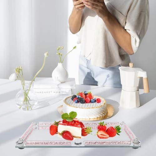 - MULTI-PURPOSE USE : The shiny glass mirror tray makes it suitable for displaying perfume, cosmetics, jewelry, necklaces, rings, earrings, fruits, wine, etc. The mirrored surface makes everything look more gorgeous and eye-catching in the light, making the perfect table centerpiece. Complement your home decor with modern design vanity tray.
