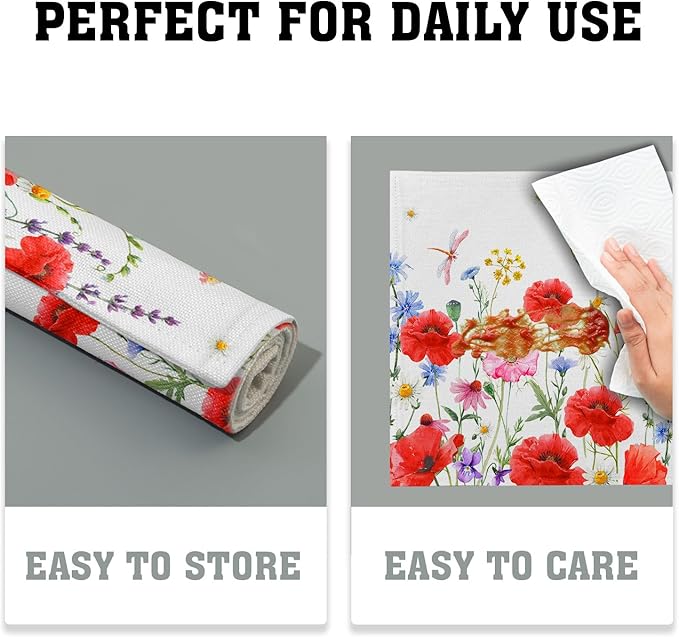 - 【PLACEMAT SIZE】Our red flowers poppy placemats measures 18 x 12 Inch (45x30cm).A set of 4 placemats, the plate and fork are not included.Reusable placemats are good heat insulation effect, will protect your tabletop from heat,thus extending the service life of your table.