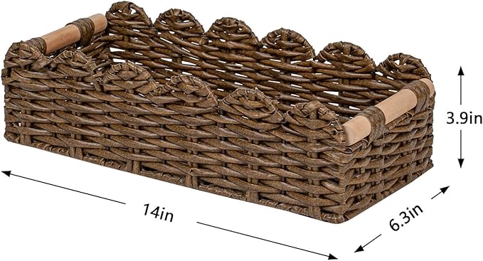 CubesLand PP Wicker Scalloped Edge Floating Shelves Baskets, Toilet Paper Basket for Over Toilet Storage Shelf, Ending Table, Cabinet Organizing and Home Décor, Rattan Basket with Wood Handle,Brown