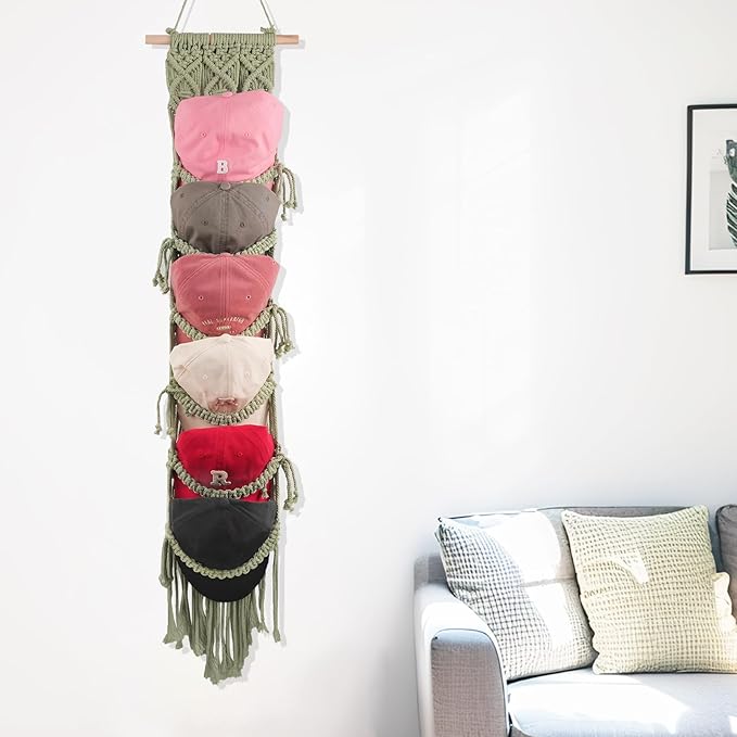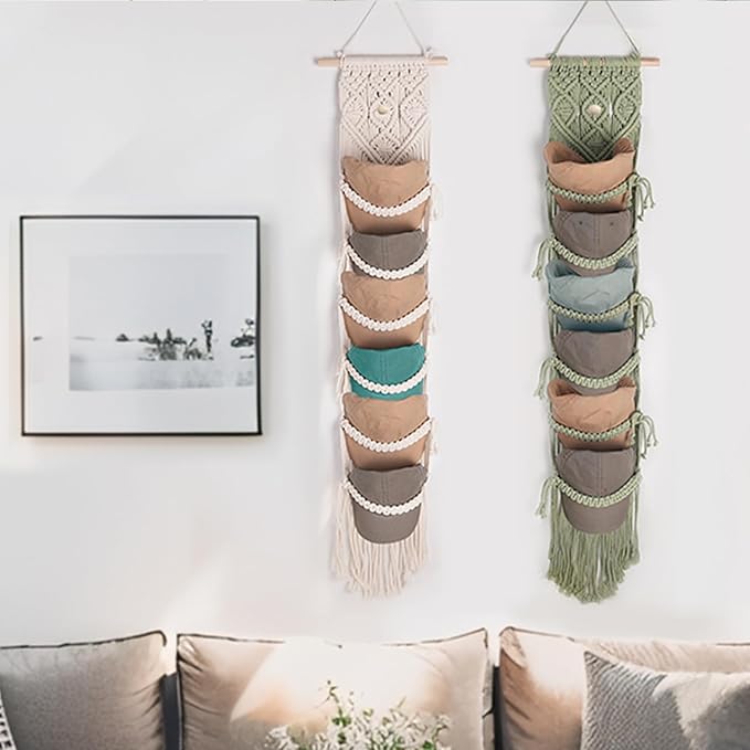 - Handcrafted Bohemian Design: More than just a cap holder, this handwoven piece is a work of art. It combines functionality with aesthetic charm, bringing a touch of bohemian elegance to any room