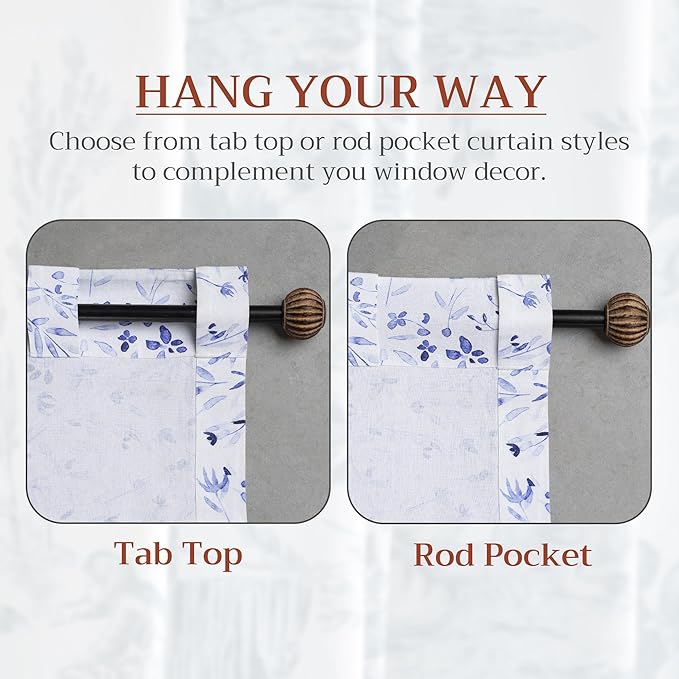 - High-quality cotton: Made from 100% breathable cotton, this curtain with rod and loop pockets offers a soft, elegant touch to any space. Ideal for living room, bedroom, dining, or home office, it brings charm and character without overwhelming your décor