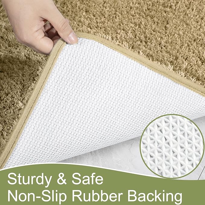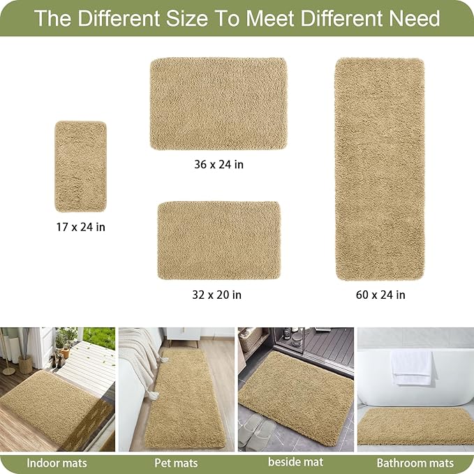 AROGAN Luxury Long Bathroom Runner Rug, 24x60 Inch Thick Soft and Absorbent Non Slip Bath Mat, Rubber Backing Quick Dry Rugs Carpets, Machine Washable Plush Mats for Shower Floor, Beige