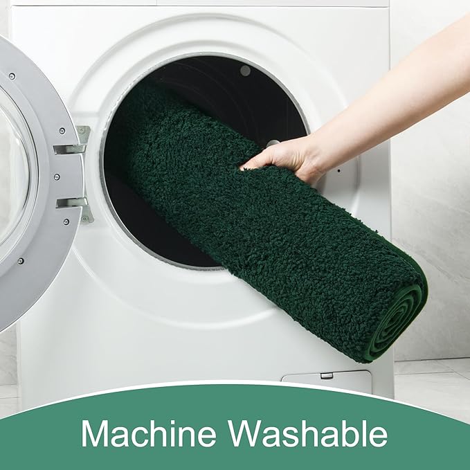 AROGAN Luxury Long Bathroom Runner Rug, 24x72 Inch Thick Soft and Absorbent Non Slip Bath Mat, Rubber Backing Quick Dry Rugs Carpets, Machine Washable Plush Mats for Shower Floor, Deep Green
