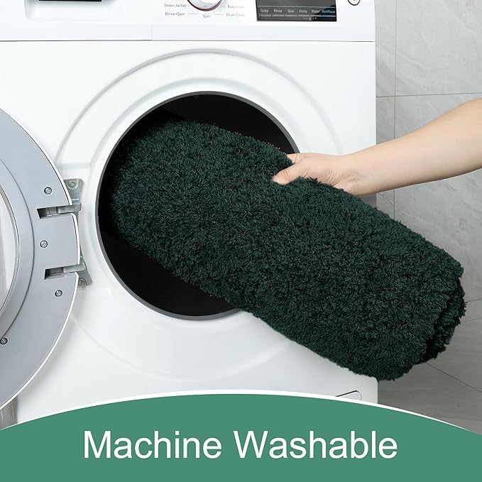 AROGAN Luxury Long Bathroom Runner Rug, 24x48 Inch Thick Soft and Absorbent Non Slip Bath Mat, Rubber Backing Quick Dry Rugs Carpets, Machine Washable Plush Mats for Shower Floor, Deep Green