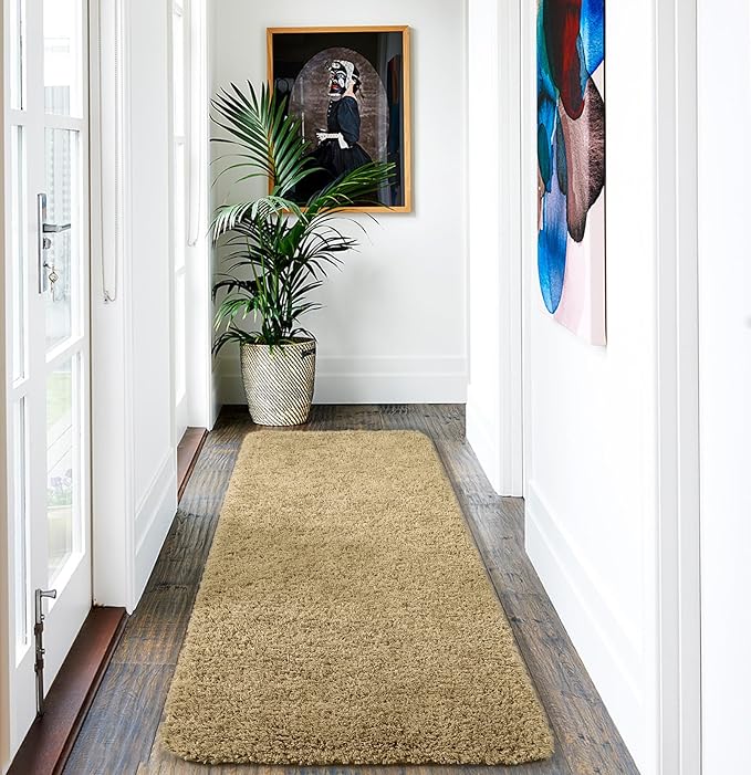 AROGAN Luxury Long Bathroom Runner Rug, 24x72 Inch Thick Soft and Absorbent Non Slip Bath Mat, Rubber Backing Quick Dry Rugs Carpets, Machine Washable Plush Mats for Shower Floor, Beige