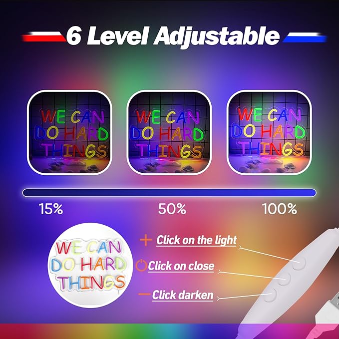 - Unique Design of Neon Sign: We can do hard things neon sign uses LED neon light strips bent into letter shapes, with 6 colors of light strips. The colors are rich, bold and fashionable, attracting people's attention whether lit or extinguished, and adding a touch of personality to any room or space