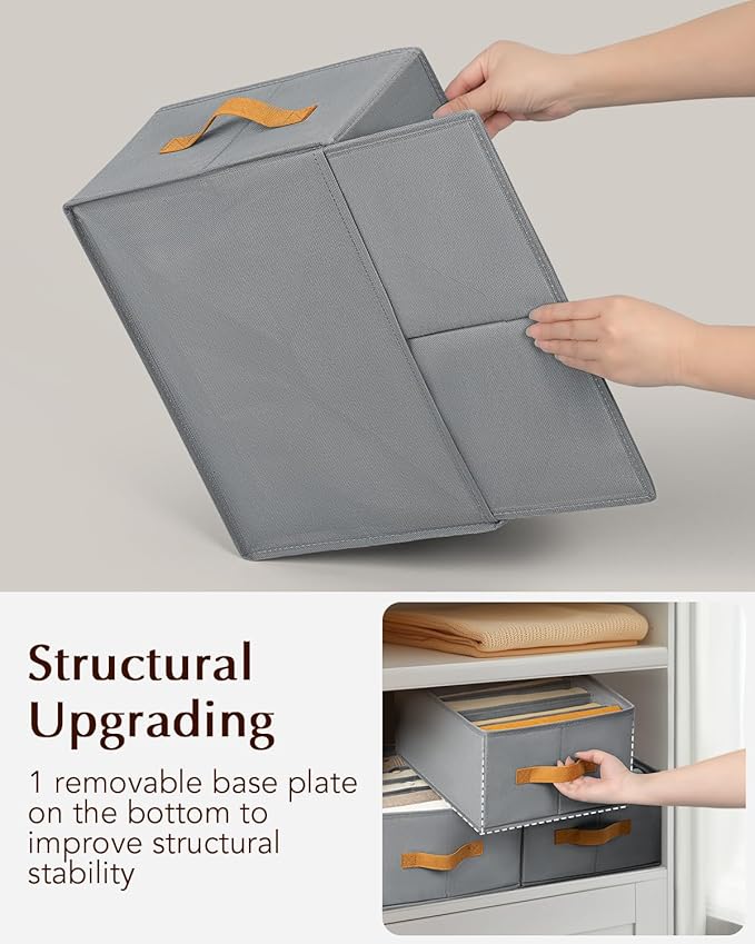 - High Quality Material: The closet organizer is made of thicker and thickened high quality non-woven material, supported by cardboard all around, the sidewalls and base provide extra stability, stronger than nylon denim drawer organizers for clothing, our clothes organizer ensures extended service life, can be easily cleaned and maintained, while allowing for secure stacking of multiple organizers, effectively optimizing your cabinet space