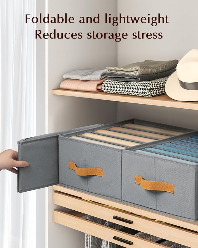 Clothes Organizers and Storage - 4/5/7 Grids Fabric Jeans Organizer with Handles, Foldable Closet Organizers Dividers, Wardrobe organizer for Pant, Sweater, T-shirt, Scarf, 3 Pack, Pale Grey