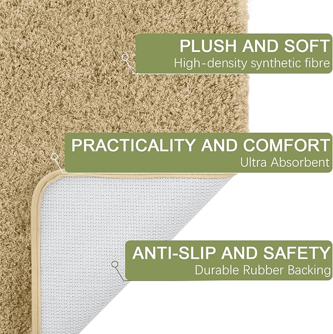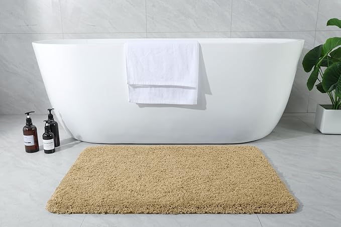 AROGAN Luxury Long Bathroom Runner Rug, 24x36 Inch Thick Soft and Absorbent Non Slip Bath Mat, Rubber Backing Quick Dry Rugs Carpets, Machine Washable Plush Mats for Shower Floor, Beige