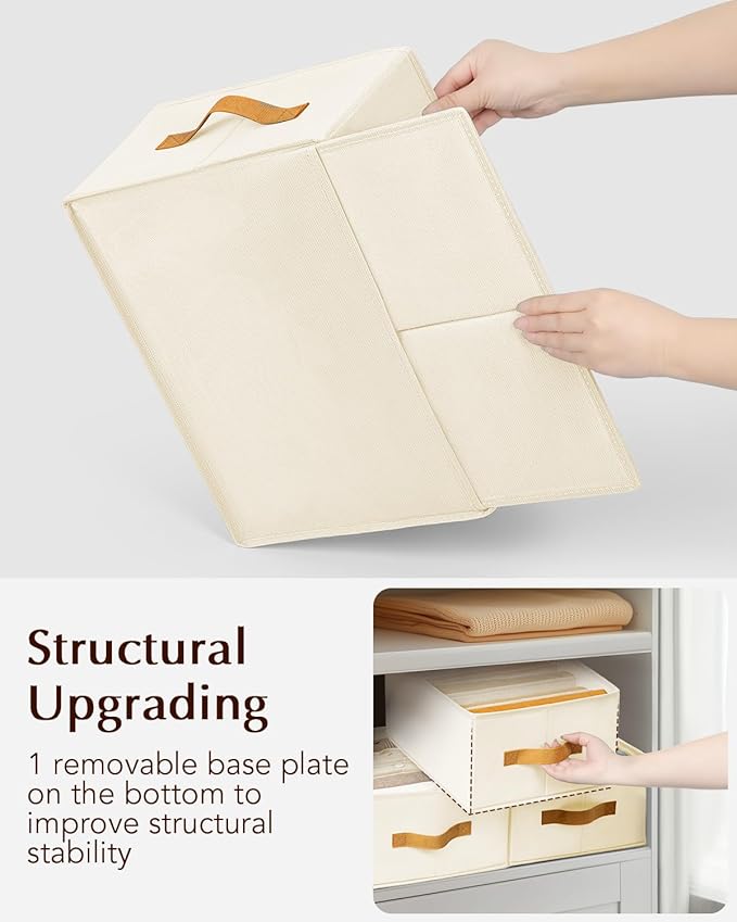 - High Quality Material: The closet organizer is made of thicker and thickened high quality non-woven material, supported by cardboard all around, the sidewalls and base provide extra stability, stronger than nylon denim drawer organizers for clothing, our clothes organizer ensures extended service life, can be easily cleaned and maintained, while allowing for secure stacking of multiple organizers, effectively optimizing your cabinet space