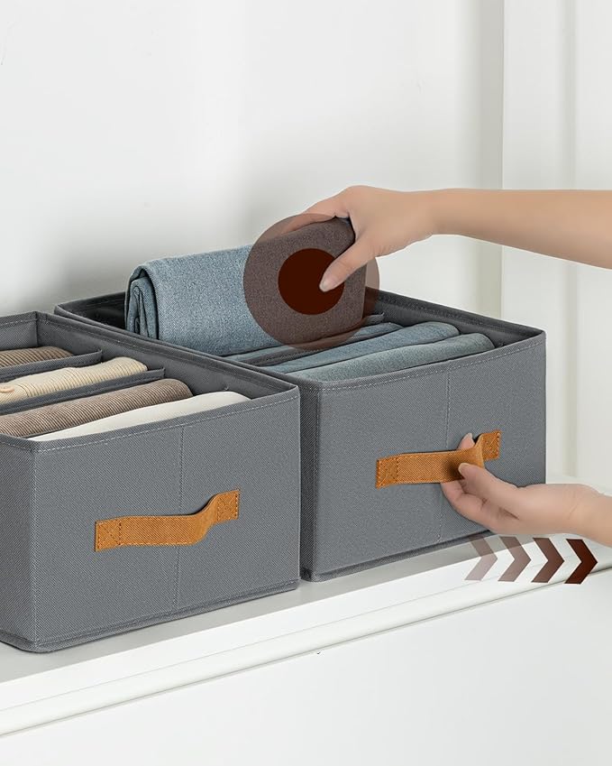 Clothes Organizers and Storage - 4/5/7 Grids Fabric Jeans Organizer with Handles, Foldable Closet Organizers Dividers, Wardrobe organizer for Pant, Sweater, T-shirt, Scarf, 6 Pack, Pale Grey