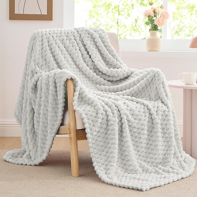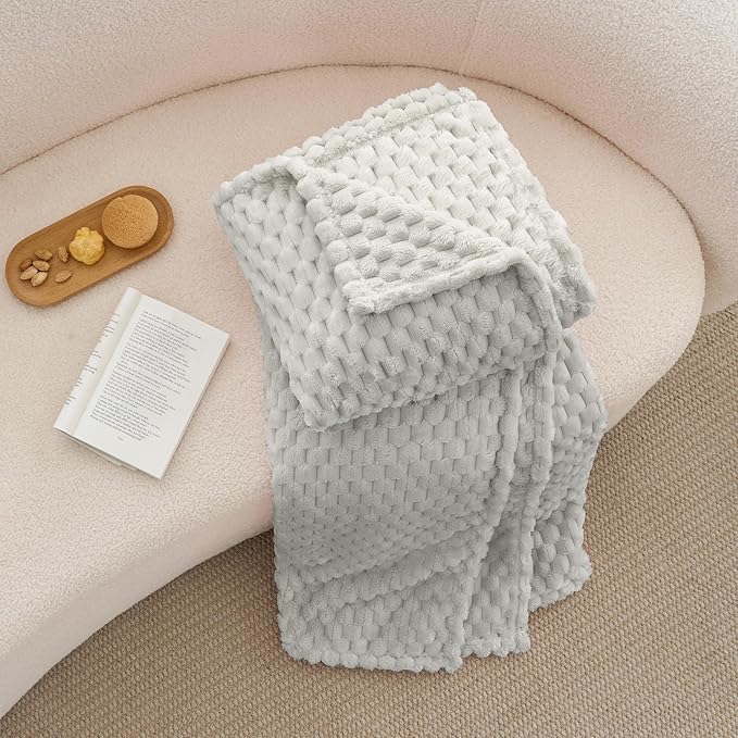 BEDELITE Fleece Blanket Twin for Bed Couch, 3D Jacquard Decorative Light Grey Throw Blanket, Soft and Cozy Warm Plush Fuzzy Blanket All Seasons Suitable, 60x80Inches