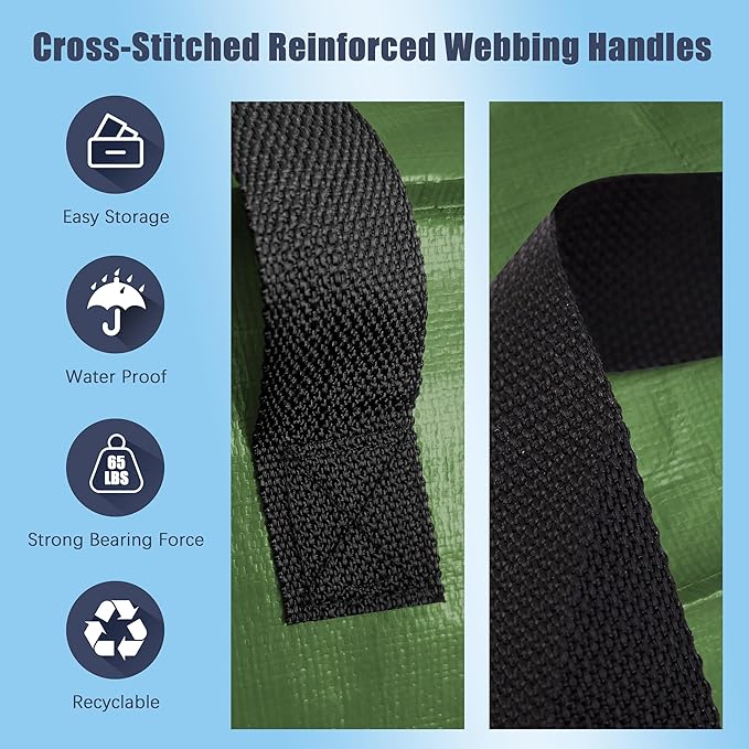 12 Pack Large Strong Moving Bags with Zippers & Carrying Handles - Water-Resistant - Heavy Duty Storage Tote for Space Saving, Fold Flat, Alternative to Moving Box (Olive Green)