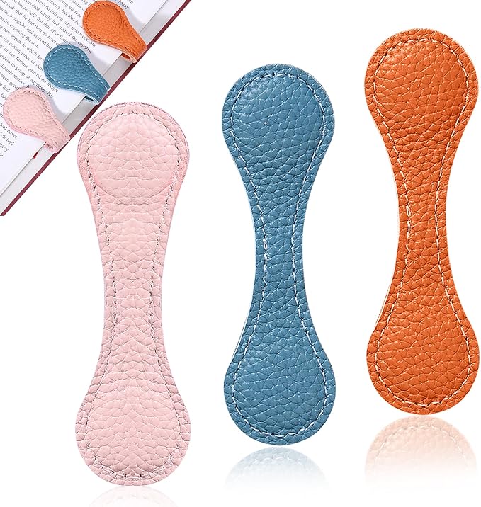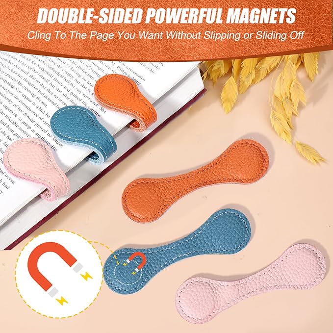 Palksky Magnetic Bookmark, 3PCS Genuine Leather Book Markers Magnet, Morandi Colors Vintage Leather Magnet Markers Clips for Reading Women Men Teachers Students, Reading Accessories, Book Lovers Gifts