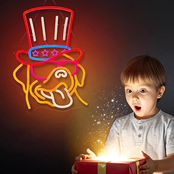 Top Hat Labrador Neon Sign Sunglasses Cute Dog Neon Sign for Wall Decor Cute Dog USB Dimmable LED Neon Lights for Bedroom Zoo Pet Shop Cat Cafe Decoration Gif for Teen Boys Girls Christmas