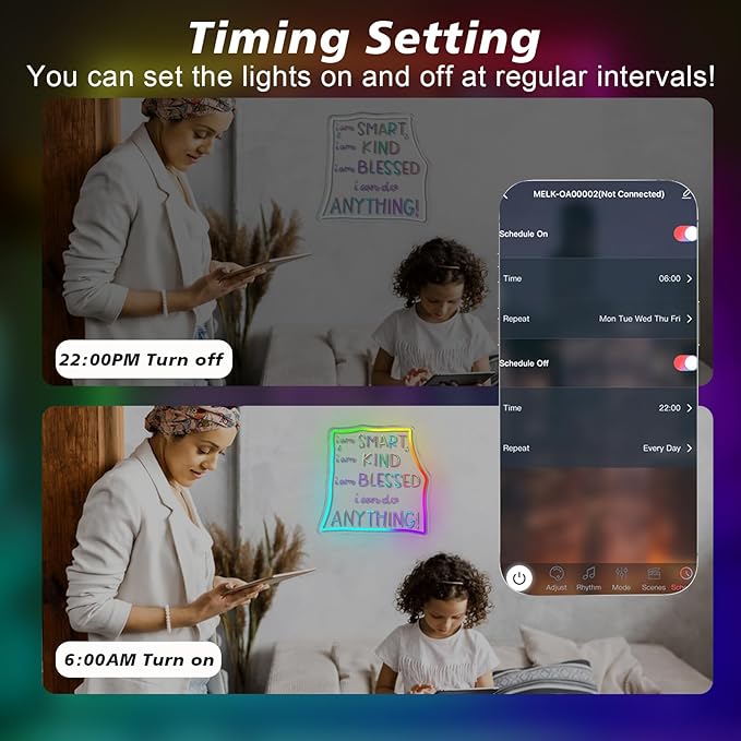 - HIGH-QUALITY MATERIALS: Neon lights are made of flexible led strip and acrylic back plate. Resistant to high temperatures ,durable and no noise. 5V/2A low voltage advanced electrode system, low energy consumption and long life, no risk of too hot or glass damage.