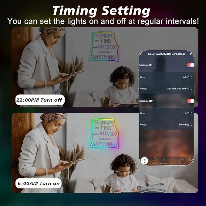 - HIGH-QUALITY MATERIALS: Neon lights are made of flexible led strip and acrylic back plate. Resistant to high temperatures ,durable and no noise. 5V/2A low voltage advanced electrode system, low energy consumption and long life, no risk of too hot or glass damage.