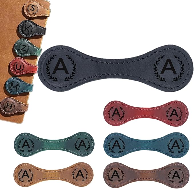 - LEATHER MAGNETIC BOOKMARKS:Book marks have 6 different colors, each color has 26 letters.Select your name initials or custom.Make an timeless bookmark