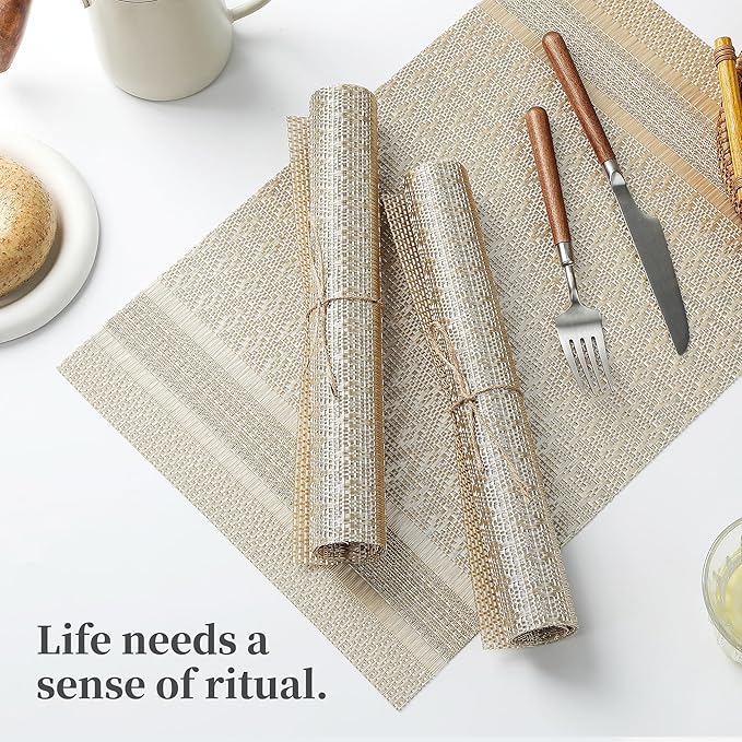 - Elegant and Practical Design: With a luxurious vinyl woven texture, precision cutting, and heat-trimmed edges, our double-sided placemats offer a sophisticated and practical solution. They provide a non-slip surface, resist fading, and are easy to clean, elevating your dining experience