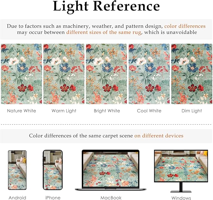 - Classic Modern Style: PureCozy area rug has a trendy faded style and a unique floral pattern, modern design blend perfectly with your home, suitable for the living room, bedroom, dining room, laundry room, entryway, kids' room, playroom, kitchen and office