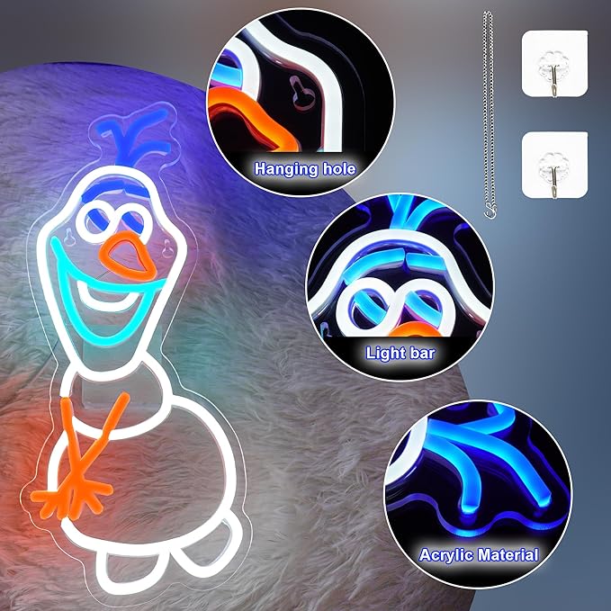 - 【Smart and cute design】: This Snowman led signs for bedroom wall was carefully designed by our designers. Neon lights can not only make a room interesting, but also create a dreamy and romantic atmosphere for your place. Suitable for party, couple room, girl party, family wall decoration, bedroom, living room, hotel, bar.