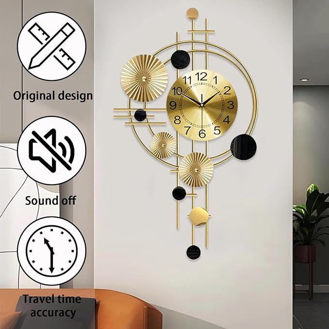 - 🕝【Metal Oversized Wall Clock】:Golden clock face designed with classic large bold black Arabic numerals-easily to read for children and the elder from all directions.