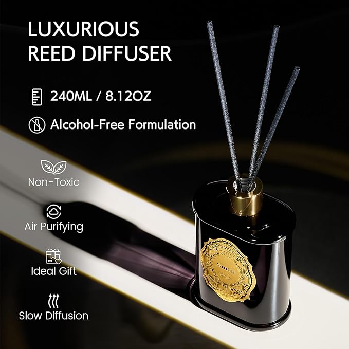 - 【Large Capacity & Long-lasting】: Featuring a generous 240ML (8.4 oz) capacity, this diffuser offers a slow, alcohol-free evaporation for a lasting aromatic experience, reducing the need for frequent replacement