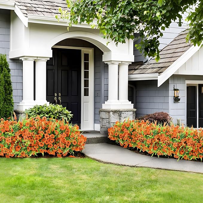- 🌸【Perfect for Outdoor/Indoor】Plastic flowers are ideal for outdoor porches, walkway, terraces window box, front yard, pots ,hanging planters, gardens, landscape, windowsills, allow you have beautiful color all year around. Also suit for birthdays, weddings, memorial place or grave, they can live anywhere and have withstood heavy rain storms and winds.