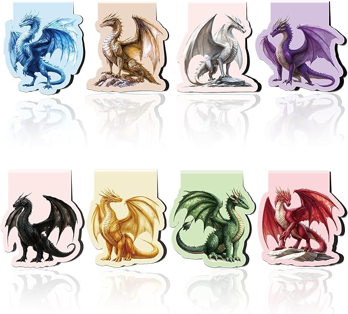 - Bold Power Dragon Artwork - Includes 8 bookmarks featuring dynamic dragon designs that showcase strength and majesty, perfect for fans of powerful mythical creatures