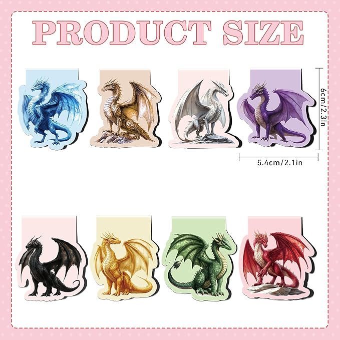 Cool Dragon Magnetic Bookmarks: 8 Pcs Powerful Dragon with Wings Magnet Book Markers, Unique Book Mark Clips Gift for Men, Gifts for Men Boys Kids Book Lovers Office School Supplies