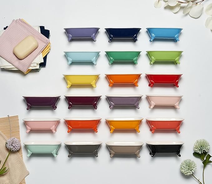 - Style: This ceramic soap dish is inspired by a vintage claw-foot bathtub and features a distressed white modern finish with two tone colors. this soap dish will fit perfectly in any bathroom sink or kitchen countertop.