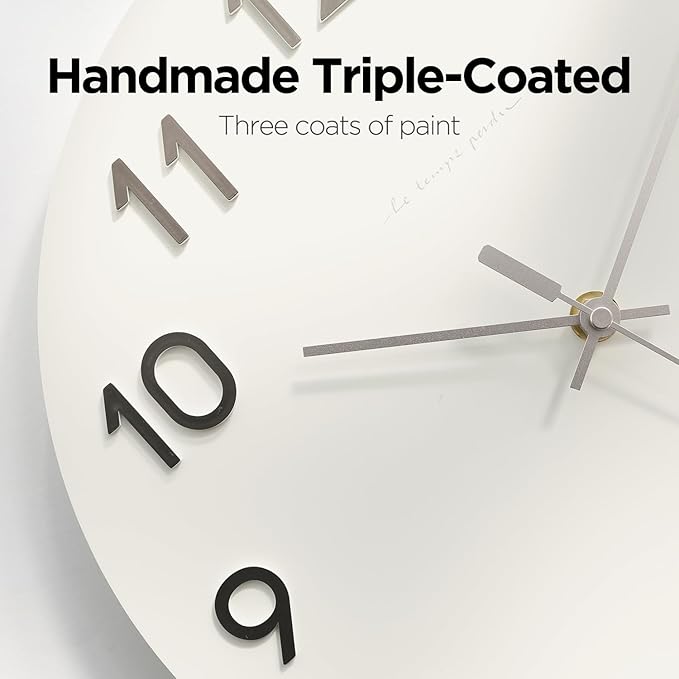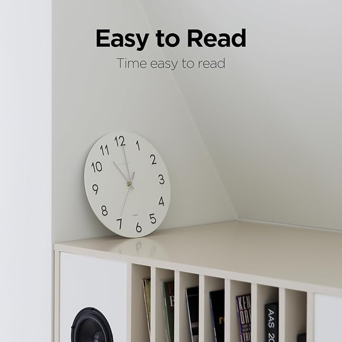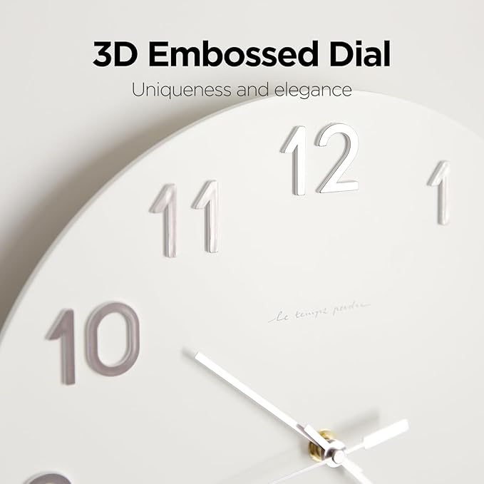 mooas 3D Numbers Modern Wall Clock, 12" Silent Non-Ticking Sweep Movement Decorative Battery Operated Analog Wall Clock for Home Décor Living Room Kitchen Bedroom Office School Hotel (Cream)